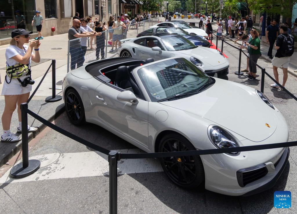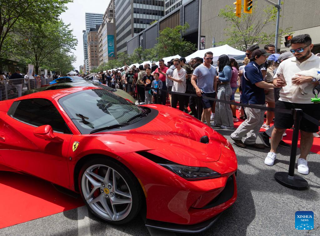 People visit the 2025 Yorkville Exotic Car Show marking the annual Father's Day in Toronto, Canada, on June 15, 2025. (Photo by Zou Zheng/Xinhua)