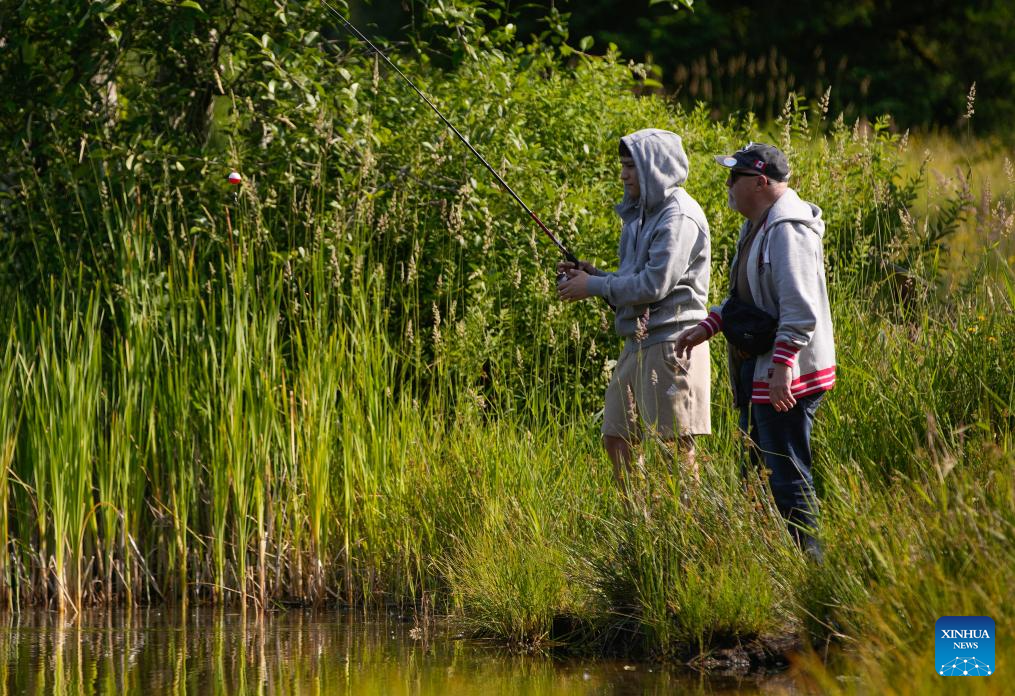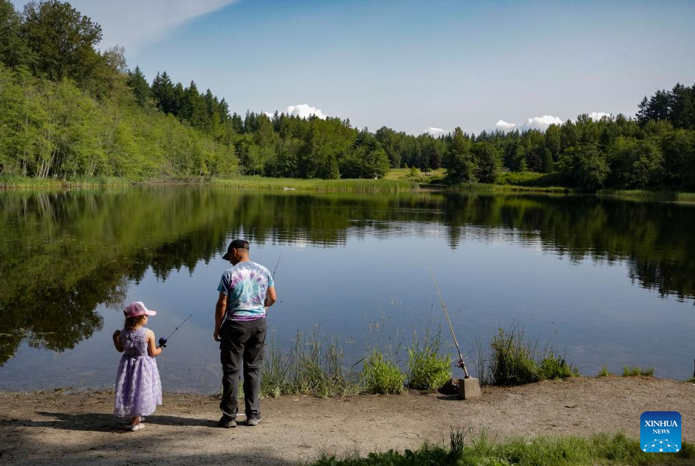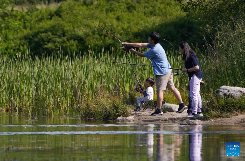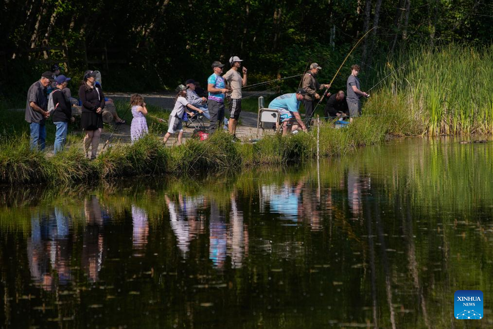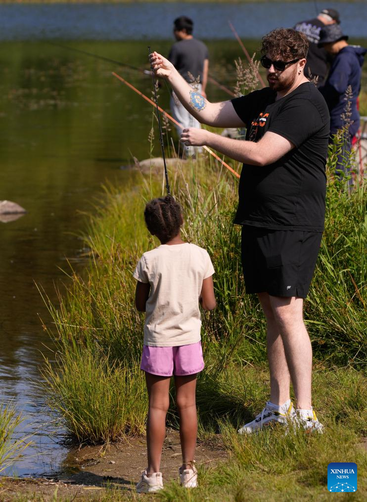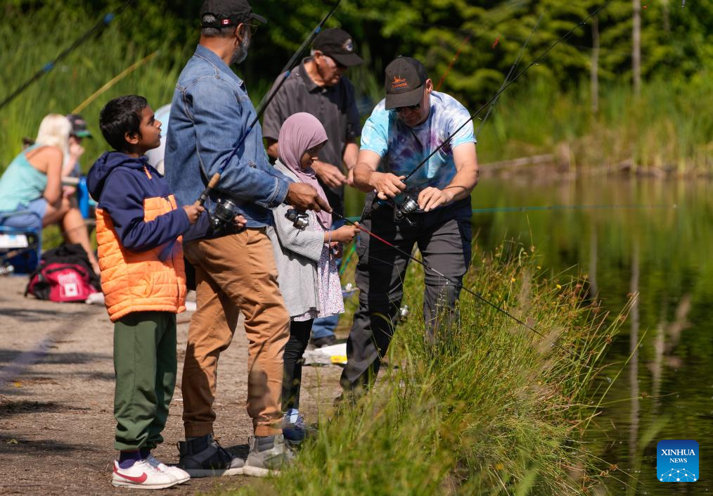 Participants are pictured during in the BC Family Fishing Weekend event in celebration of the Father's Day at Green Timbers Lake in Surrey, British Columbia, Canada, June 15, 2025. (Photo by Liang Sen/Xinhua)