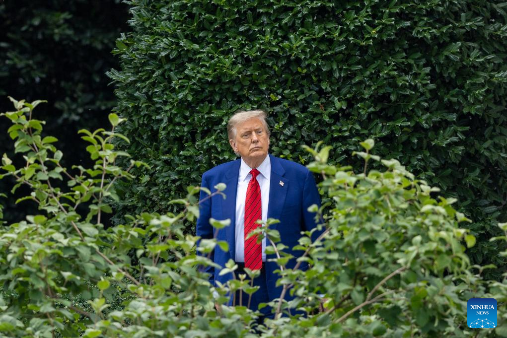 This file photo taken on June 20, 2025 shows U.S. President Donald Trump at the White House in Washington, D.C., the United States. Trump said Saturday that the United States has completed attacks on three nuclear sites in Iran, including "Fordow, Natanz and Esfahan."