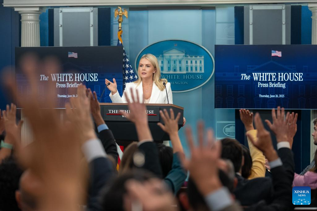 White House Press Secretary Karoline Leavitt takes questions during a press briefing at the White House in Washington, D.C., the United States, on June 26, 2025.