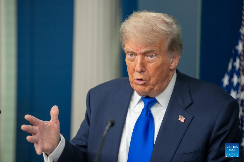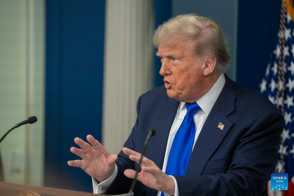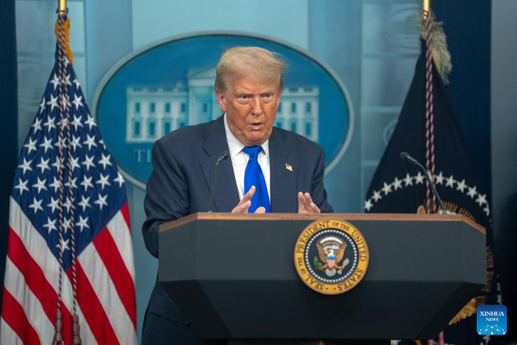 U.S. President Donald Trump speaks to the press at the White House in Washington, D.C., the United States, on June 27, 2025. Trump announced Friday that the United States would terminate all trade talks with Canada due to Canada's digital services tax on U.S. tech companies. (Xinhua/Hu Yousong)