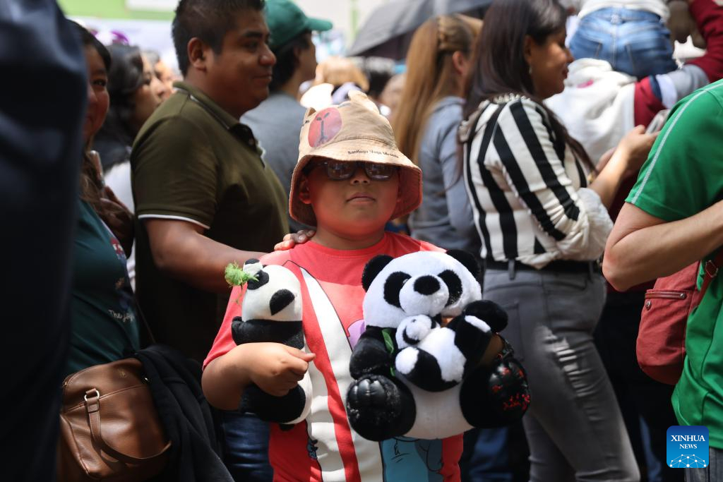 A visitor holds a toy panda at the birthday party for Giant panda Xin Xin, at Chapultepec Zoo in Mexico City, capital of Mexico, on June 29, 2025. The celebration for giant panda Xin Xin's 35th birthday was held here on Sunday. The festivities included a traditional lion dance, an exhibition of panda-themed artwork, and a birthday cake ceremony, which drew large crowds in a lively atmosphere.
