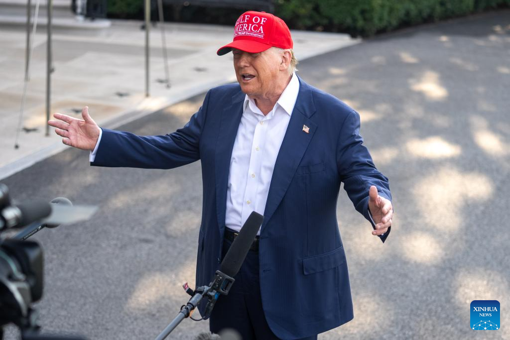 U.S. President Donald Trump speaks to the press at the White House in Washington, D.C., the United States, on July 1, 2025. Trump said on Tuesday that Israel has agreed to the necessary conditions to finalize a 60-day ceasefire to end the conflict in Gaza. (Xinhua/Hu Yousong)