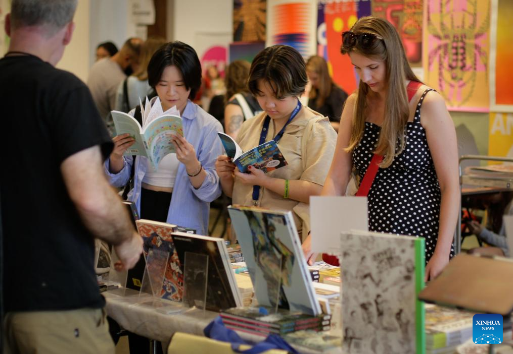 Visitors browse publications during the 2025 Vancouver Art Book Fair in Vancouver, British Columbia, Canada, July 4, 2025. The three-day event, which kicked off here on Friday and runs through July 6, features nearly 100 exhibitors showcasing artist books, zines, and other independent publications. (Photo by Liang Sen/Xinhua)