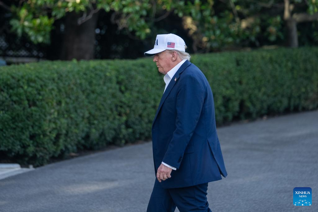 U.S. President Donald Trump returns to the White House in Washington, D.C., the United States, July 6, 2025. (Xinhua/Hu Yousong)