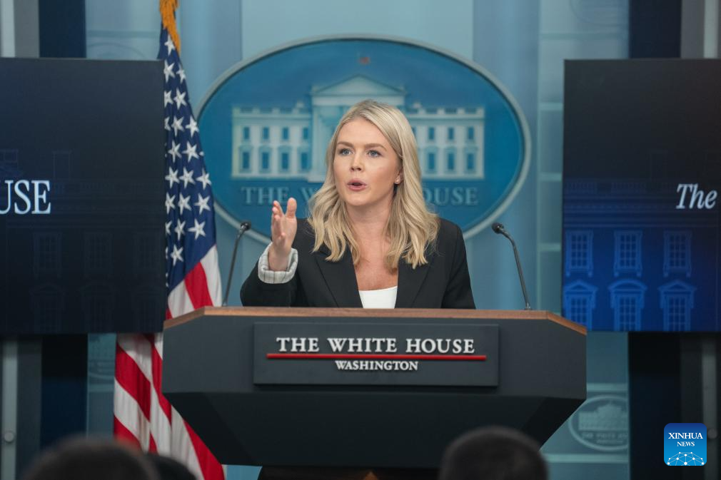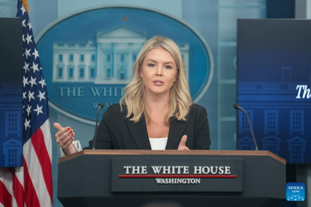 White House Press Secretary Karoline Leavitt speaks during a press briefing at the White House in Washington, D.C., the United States, on July 7, 2025. Leavitt said Monday afternoon that U.S. President Donald Trump plans to issue an executive order to extend the pause on "reciprocal tariffs" from July 9 to Aug. 1. (Xinhua/Hu Yousong)