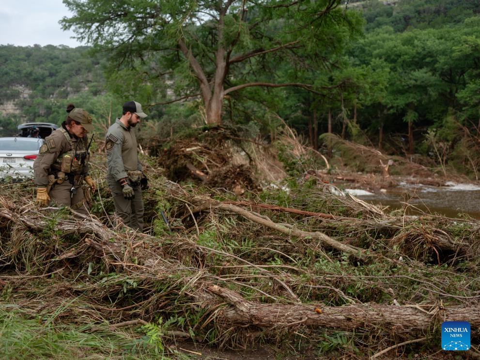 Texas Game Wardens patrol around Camp Mystic in Hunt, Texas, the United States, July 5, 2025, following the July 4 devastating flooding. The July 4 devastating flooding in central Texas has claimed at least 119 lives as of Wednesday morning, with the death toll widely expected to further climb, local authorities said. (Photo by Brenda Bazan/Xinhua)