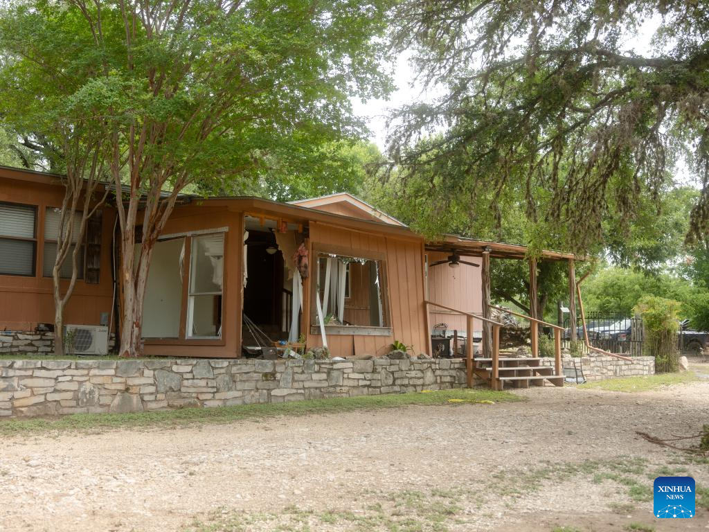 A damaged home is pictured on the banks of the Guadalupe River in Kerrville, Texas, the United States, July 7, 2025, after the July 4 devastating flooding. The July 4 devastating flooding in central Texas has claimed at least 119 lives as of Wednesday morning, with the death toll widely expected to further climb, local authorities said. (Photo by Brenda Bazan/Xinhua)