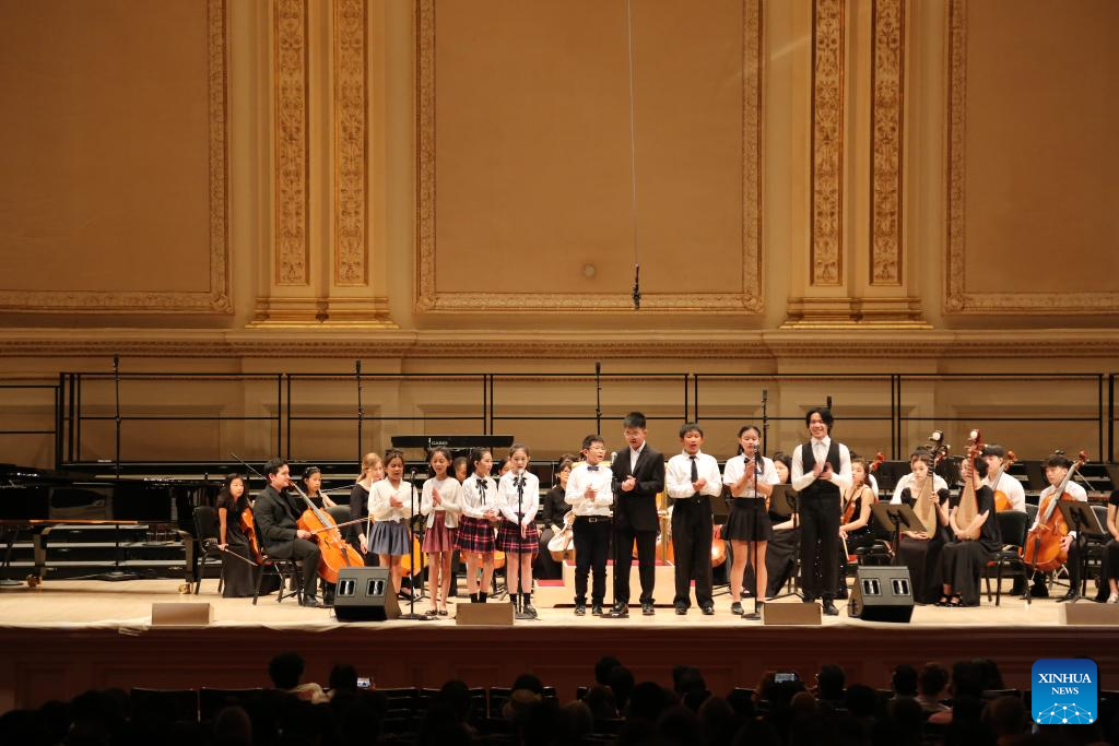 A teacher-student orchestra performs at the Sixth New York Big Apple Music Festival in New York, the United States, on July 19, 2025. (Xinhua/Liu Yanan)