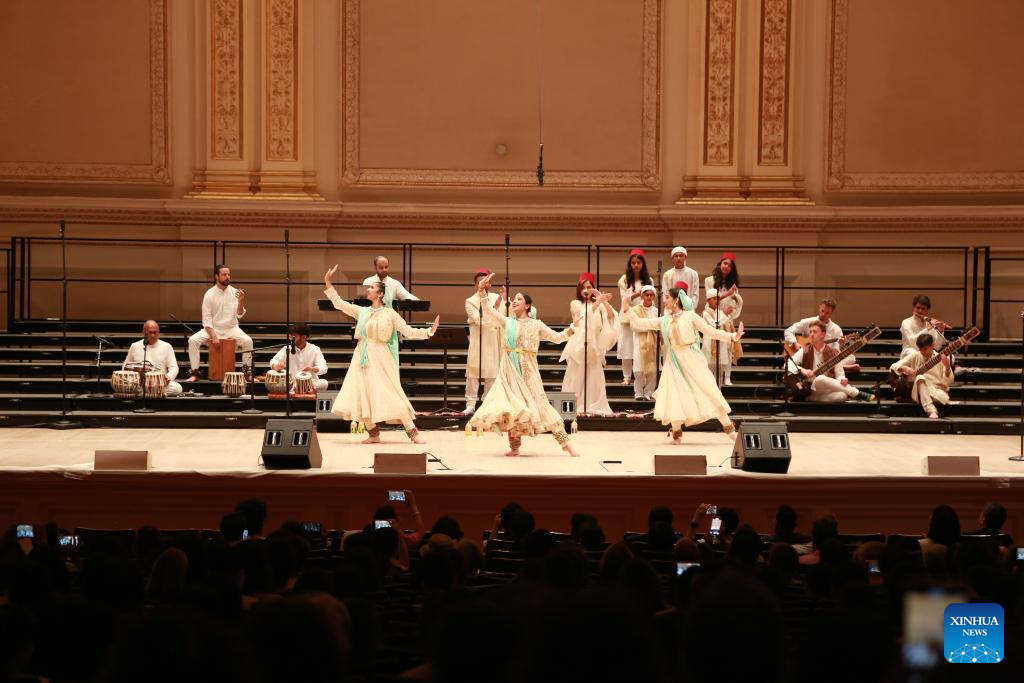 Artists from the Malhaar Ensemble perform at the Sixth New York Big Apple Music Festival in New York, the United States, on July 19, 2025. (Xinhua/Liu Yanan)