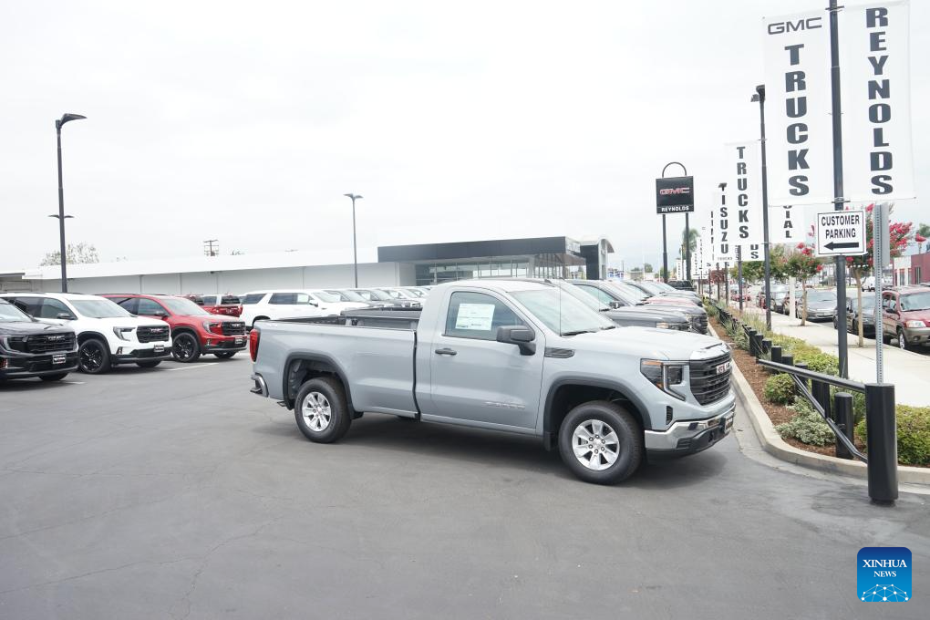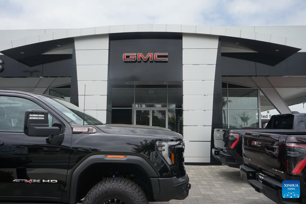 Photo taken on July 22, 2025 shows a GMC dealership in West Covina, Los Angeles County, California, the United States. The net profit attributable to stockholders of General Motors (GM) slumped 35.4 percent to over 1.89 billion U.S. dollars in the second quarter of 2025, as tariffs cost the U.S. automaker 1.1 billion dollars in the quarter. (Photo by Zeng Hui/Xinhua)