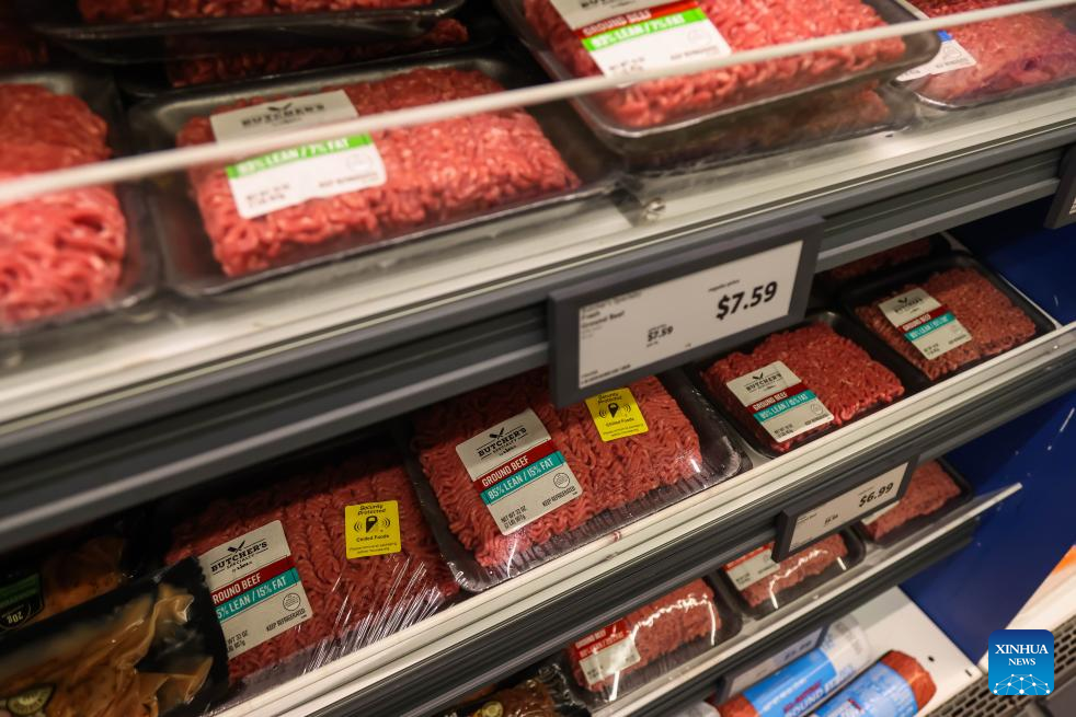 This photo taken on Aug. 12,2025, shows beef for sale at a grocery store in New York, the United States. The U.S. Consumer Price Index (CPI) increased 0.2 percent in July and 2.7 percent year-on-year, the U.S. Bureau of Labor Statistics (BLS) reported Tuesday. (Photo by Michael Nagle/Xinhua)