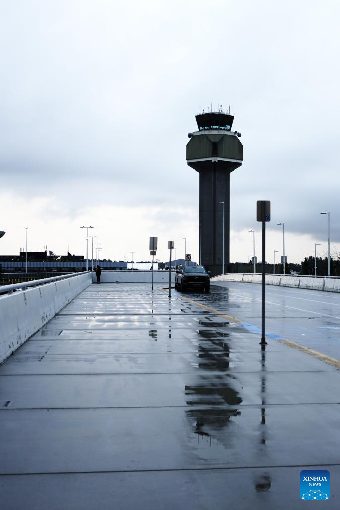 This photo taken on Aug. 13, 2025 shows an air traffic control tower at Ted Stevens Anchorage International Airport in Anchorage, Alaska, the United States. The one-on-one meeting between U.S. President Donald Trump and Russian President Vladimir Putin is scheduled for Friday in Anchorage, the largest city in the U.S. state of Alaska. (Xinhua/Wu Xiaoling)