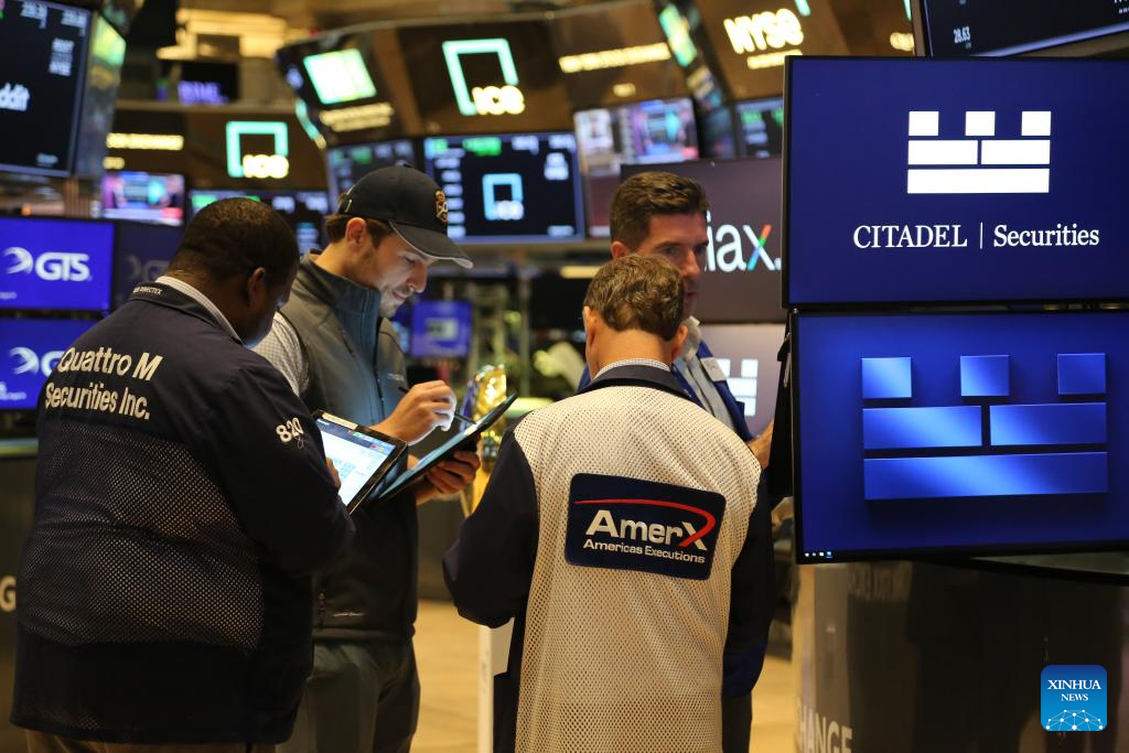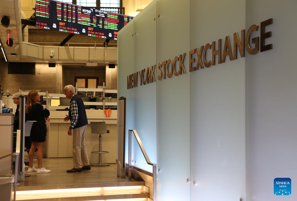 Traders work on the floor of the New York Stock Exchange in New York, the United States, on Aug. 14, 2025. U.S. stocks ended mixed on Thursday. (Xinhua/Liu Yanan)