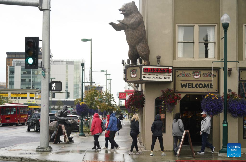 Photo taken on Aug. 14, 2025 shows a gallery in Anchorage, Alaska, the United States. The one-on-one meeting between Russian President Vladimir Putin and U.S. President Donald Trump is scheduled for Friday in Anchorage. (Xinhua/Wu Xiaoling)