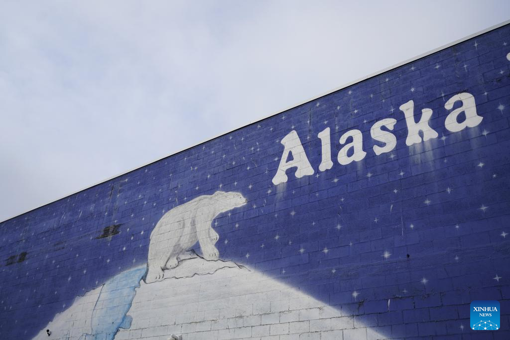 Photo taken on Aug. 14, 2025 shows a mural in Anchorage, Alaska, the United States. The one-on-one meeting between Russian President Vladimir Putin and U.S. President Donald Trump is scheduled for Friday in Anchorage. (Xinhua/Wu Xiaoling)
