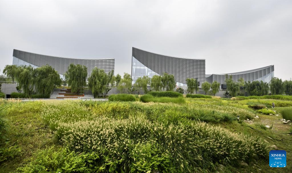 This photo taken on Aug. 15, 2025 shows the Beijing Performing Arts Center along the Grand Canal in Tongzhou District of Beijing, capital of China. Connecting Beijing and Hangzhou in east China's Zhejiang Province, the Grand Canal is the world's longest artificial waterway.