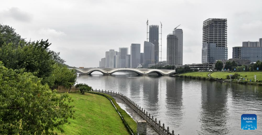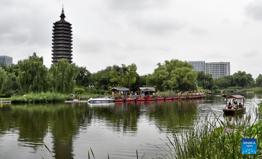 This photo take on Aug. 16, 2025 shows a view along the Grand Canal in Tongzhou District of Beijing, capital of China. Connecting Beijing and Hangzhou in east China's Zhejiang Province, the Grand Canal is the world's longest artificial waterway.