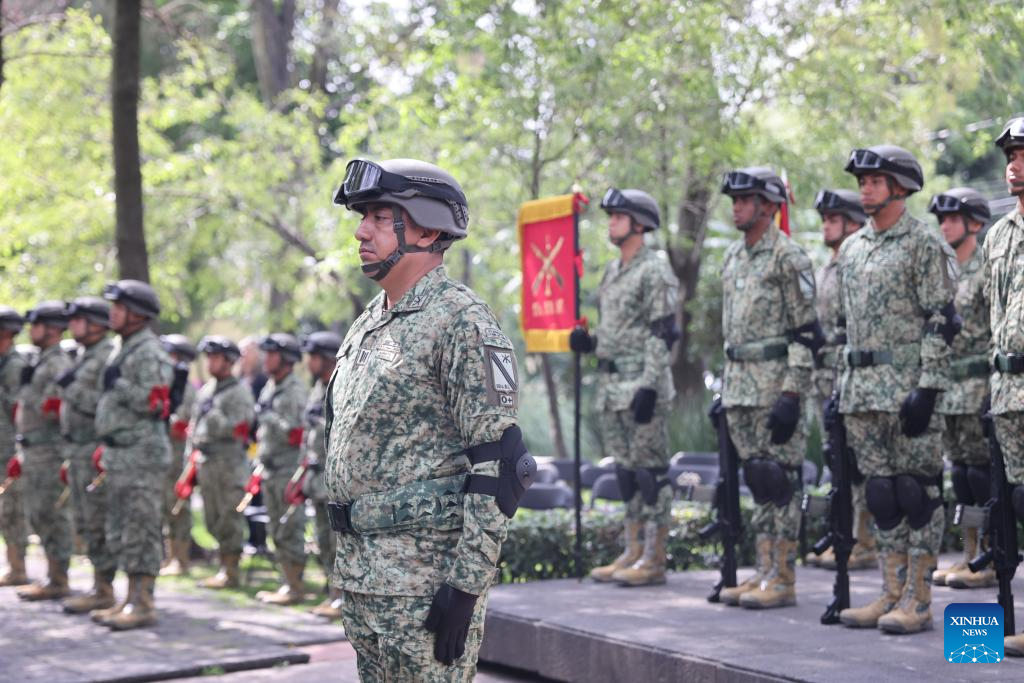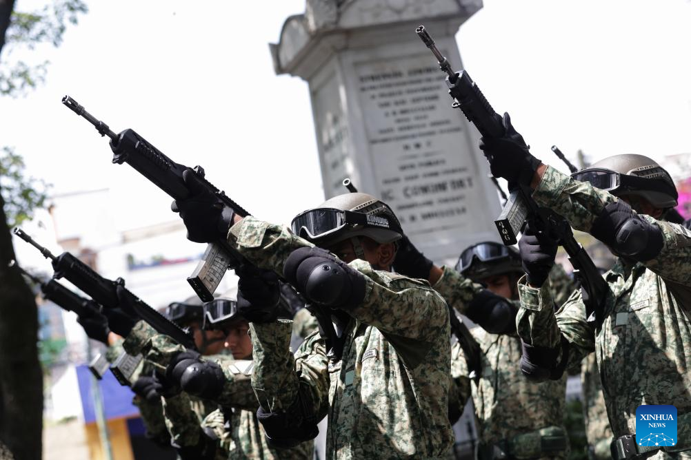 Members of Mexican army attend a commemorative ceremony in Mexico City, Mexico, on Aug. 20, 2025. On the 178th anniversary of the Battle of Churubusco, a commemorative event was held in Mexico City on Wednesday to honor the heroes who defended the nation. On Aug. 20, 1847, Mexican forces fought to resist the advance of U.S. army at Churubusco during the Mexican-American War. (Xinhua/Li Mengxin)