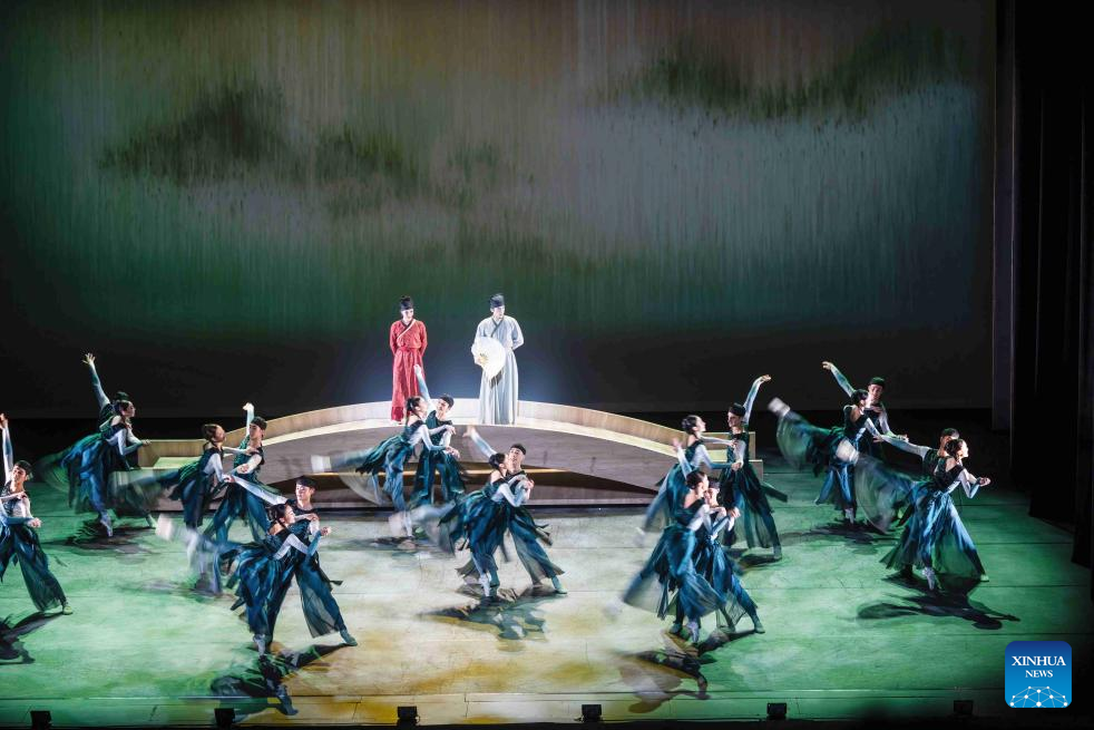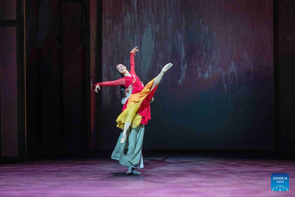 Ballet dancers perform "The Butterfly Lovers" at Lincoln Center in New York City, the United States, Aug. 22, 2025. Adapted by Hong Kong Ballet, "The Butterfly Lovers" made its overseas debut at the David H. Koch Theater of Lincoln Center in New York City on Friday night, offering a captivating fusion of the East and the West. (Photo by Winston Zhou/Xinhua)