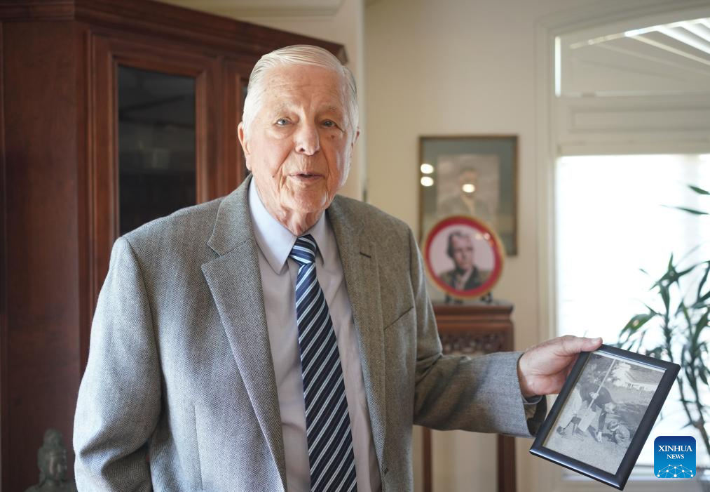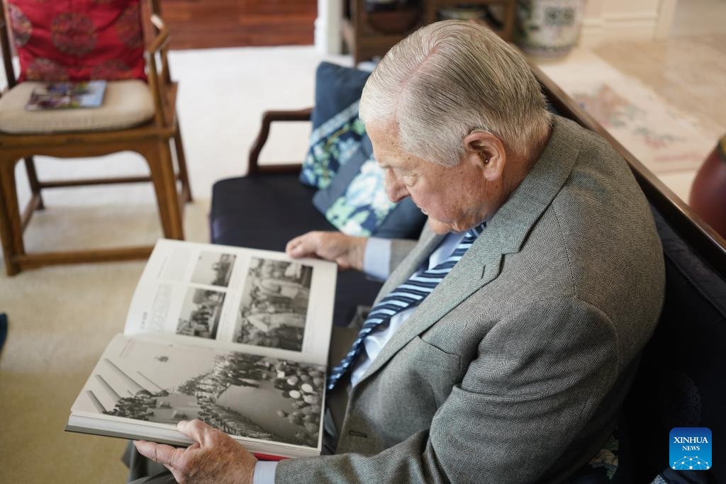 Stilwell's grandson John Easterbrook views an album at home in Saratoga of San Francisco Bay Area, the United States, on Aug. 11, 2025.(Xinhua/Wu Xiaoling)