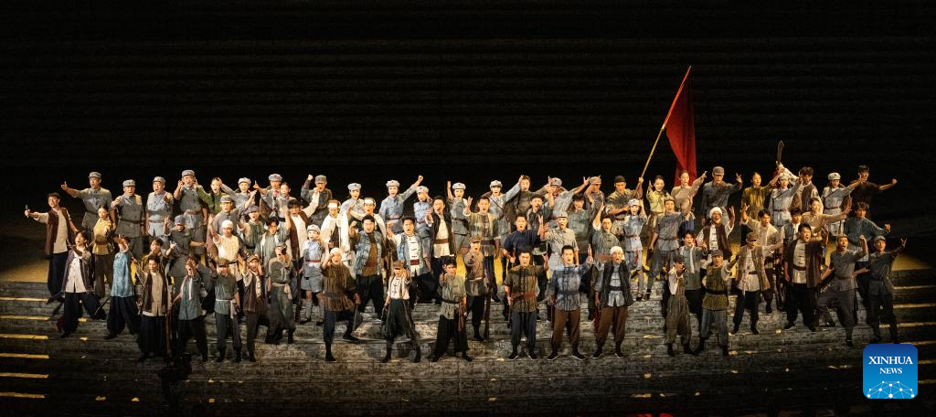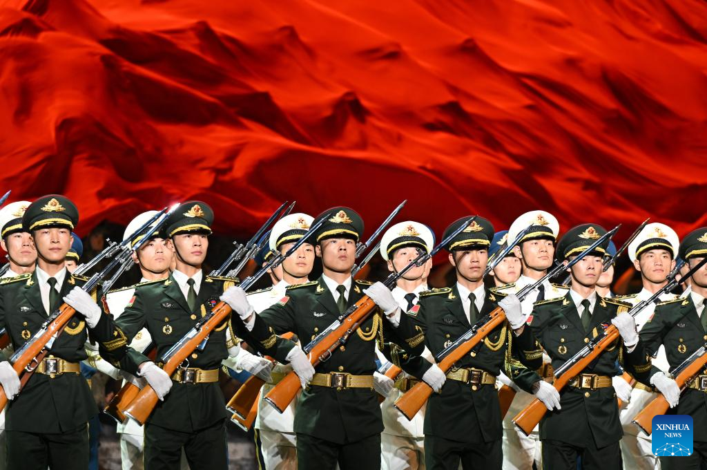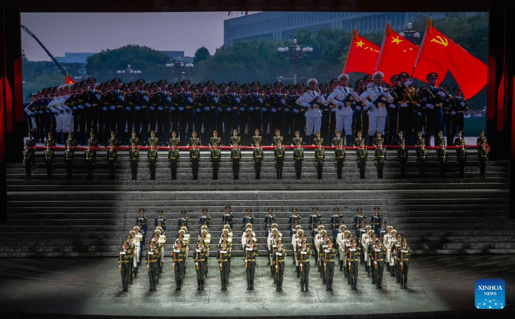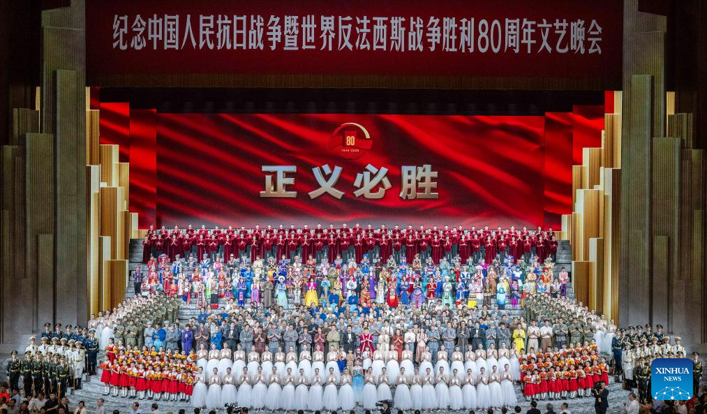 A grand cultural gala with the theme of "Justice Prevails" is staged to commemorate the 80th anniversary of the victory of the Chinese People's War of Resistance against Japanese Aggression and the World Anti-Fascist War at the Great Hall of the People in Beijing, capital of China, Sept. 3, 2025. (Xinhua/Yan Yan)