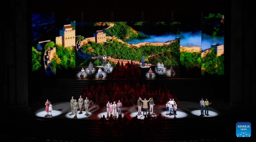A grand cultural gala with the theme of "Justice Prevails" is staged to commemorate the 80th anniversary of the victory of the Chinese People's War of Resistance against Japanese Aggression and the World Anti-Fascist War at the Great Hall of the People in Beijing, capital of China, Sept. 3, 2025. (Xinhua/Li Xiang)