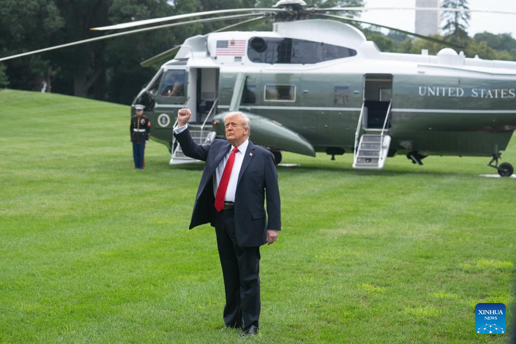 U.S. President Donald Trump prepares to board Marine One at the White House in Washington, D.C., the United States, Sept. 7, 2025. Trump said on Sunday that the White House is ready to move to the second phase of sanctions against Russia amid stalled peace talks to halt the Ukraine crisis. (Xinhua/Hu Yousong)