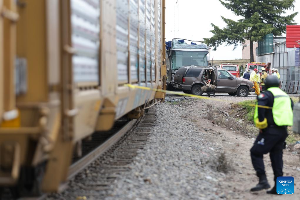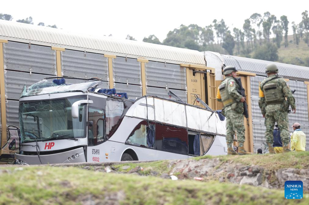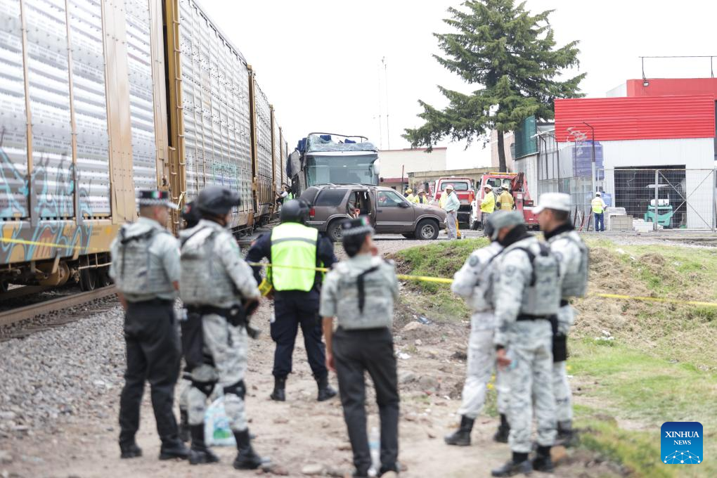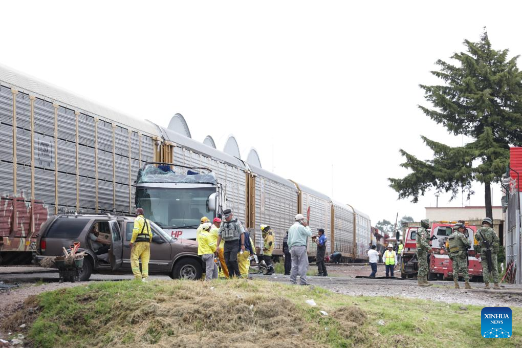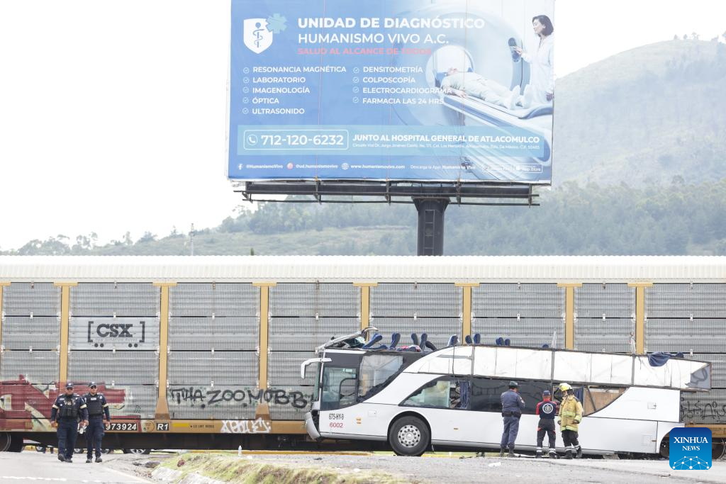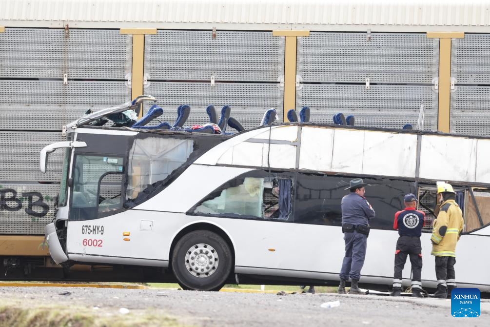 MEXICO CITY, Sept. 8 (Xinhua) -- At least 10 people were killed and over 40 others injured when a double-deck passenger bus was hit by a freight train in central Mexico on Monday, authorities said.