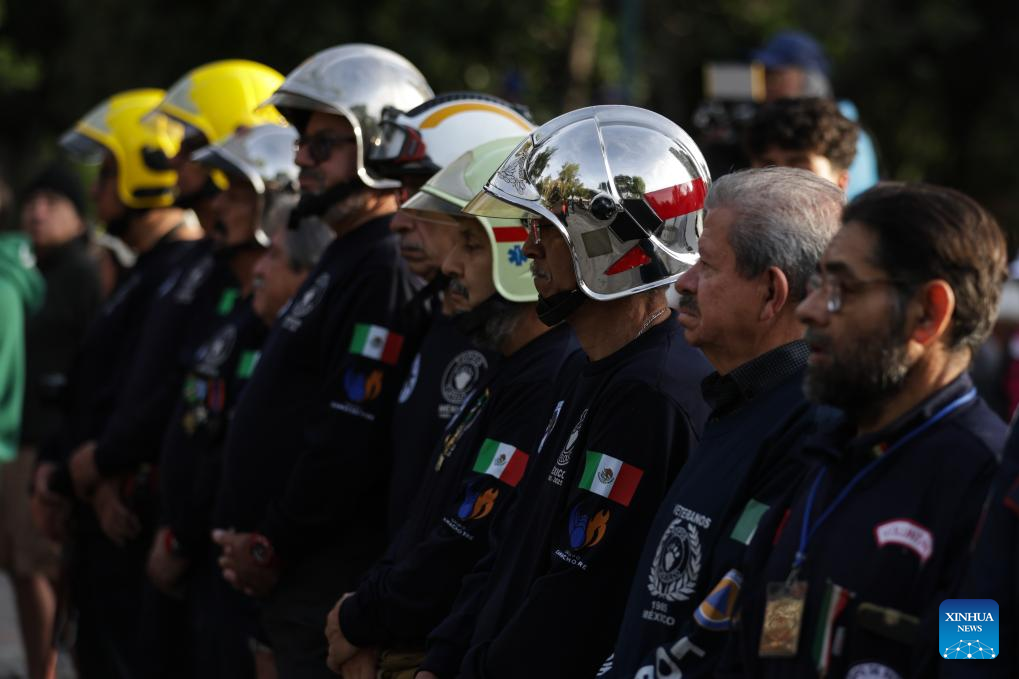 Rescuers attend an event commemorating the 40th anniversary of the 1985 Mexico earthquake, in Mexico City, Mexico, on Sept. 19, 2025. On Sept. 19, 1985, an 8.1-magnitude earthquake hit Mexico, destroying one third of the buildings in the central area of Mexico City and claiming thousands of lives. (Photo by Francisco Canedo/Xinhua)