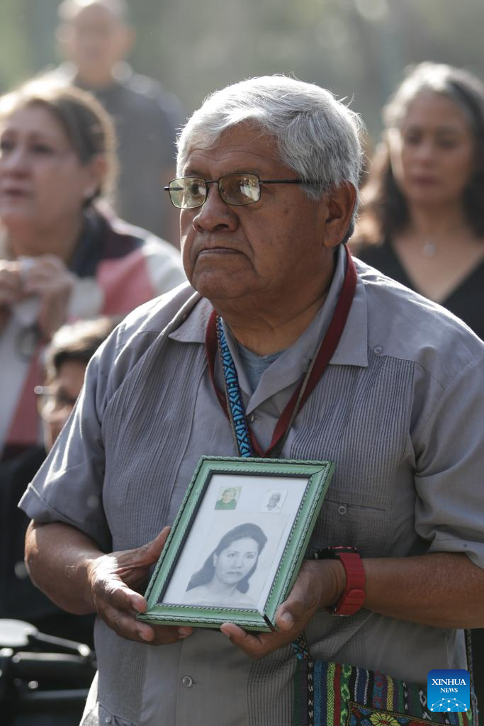 People attend an event commemorating the 40th anniversary of the 1985 Mexico earthquake, in Mexico City, Mexico, on Sept. 19, 2025. On Sept. 19, 1985, an 8.1-magnitude earthquake hit Mexico, destroying one third of the buildings in the central area of Mexico City and claiming thousands of lives. (Photo by Francisco Canedo/Xinhua)