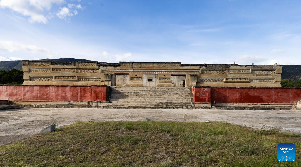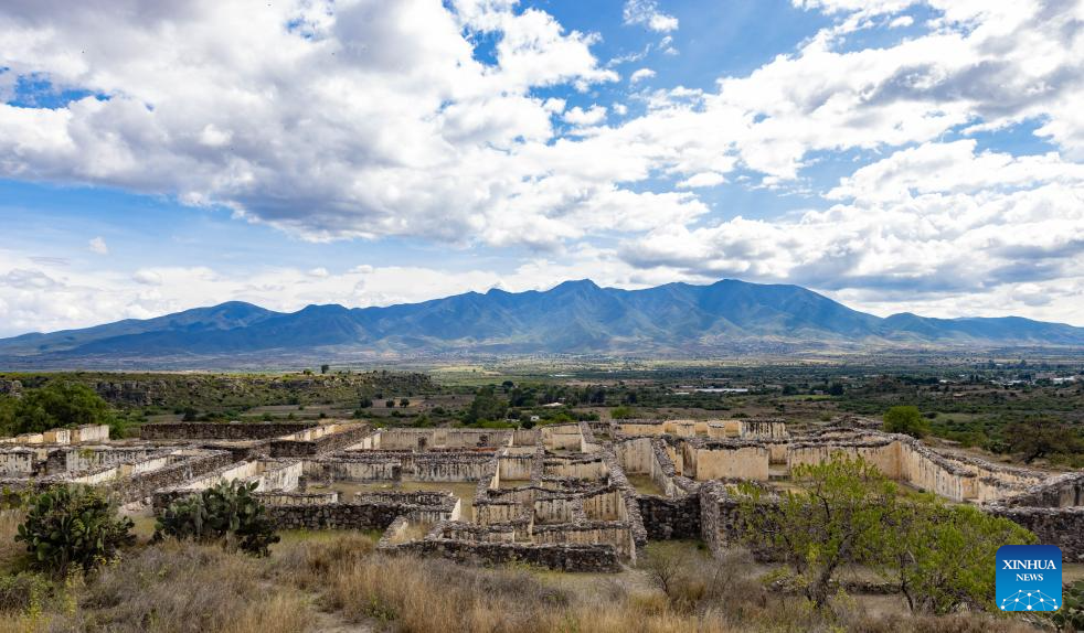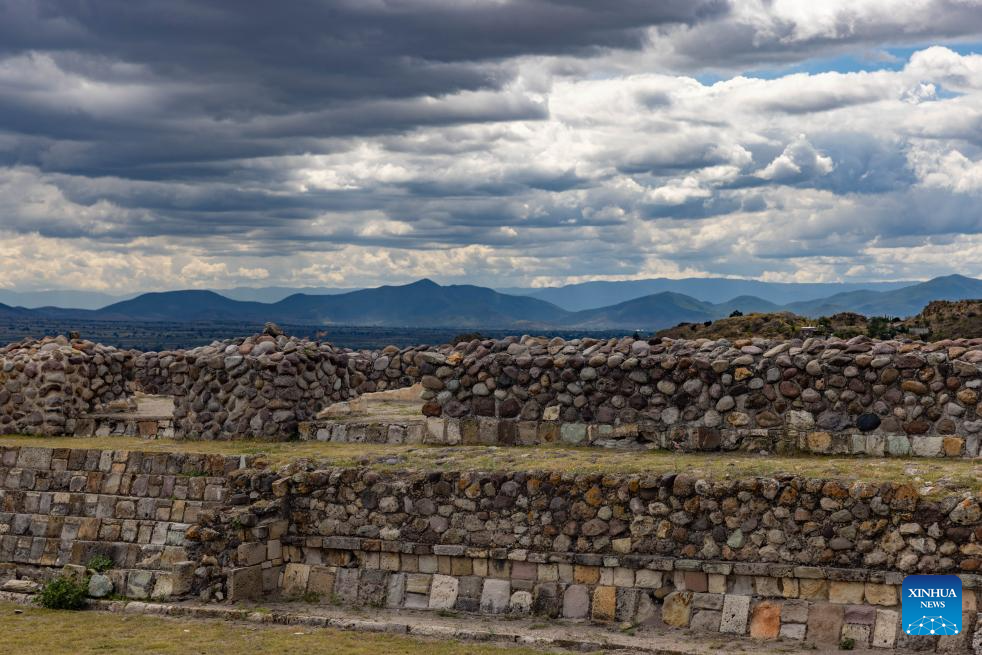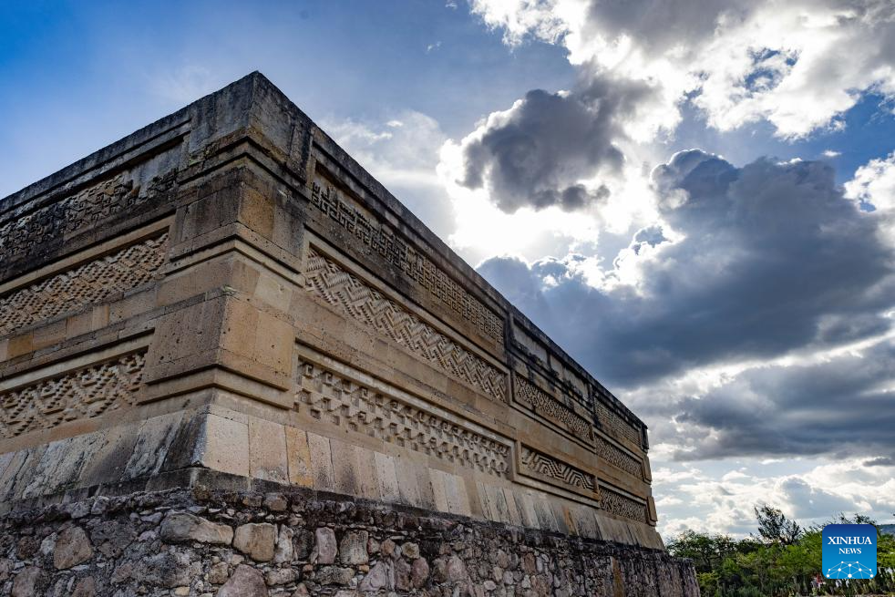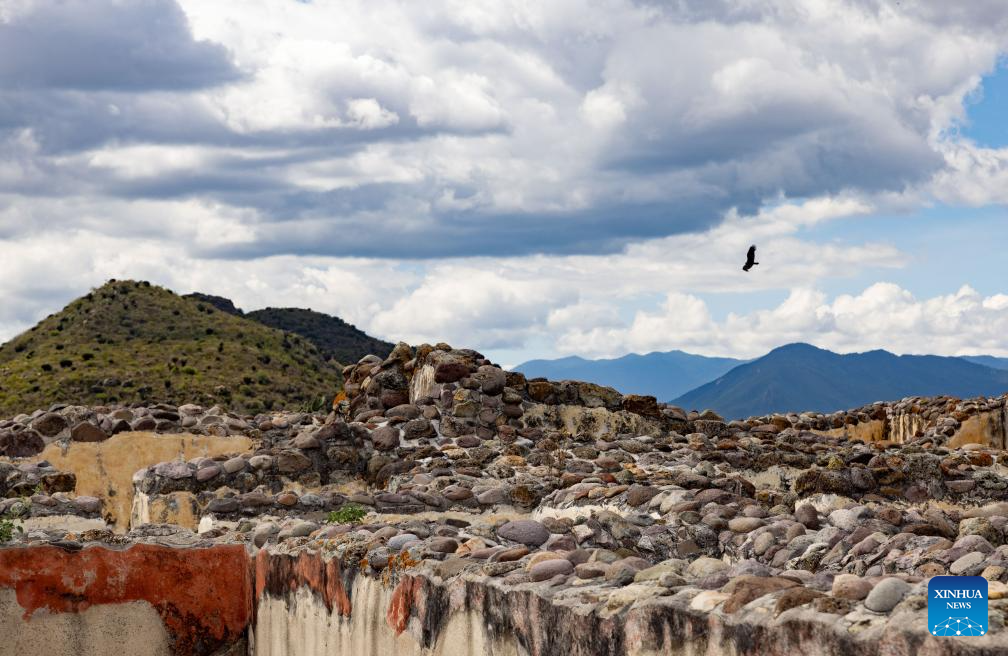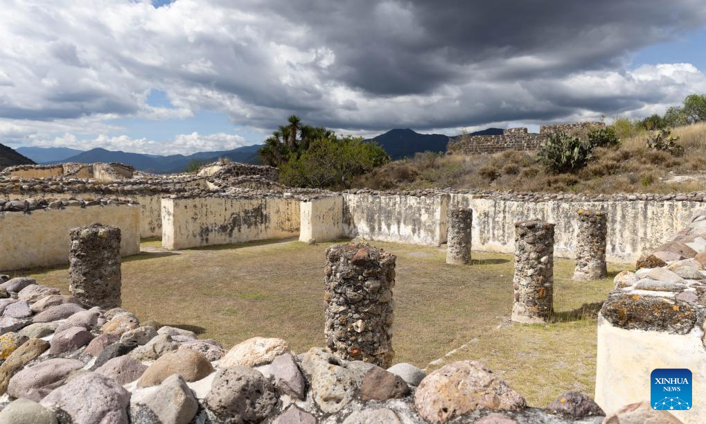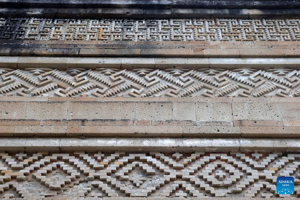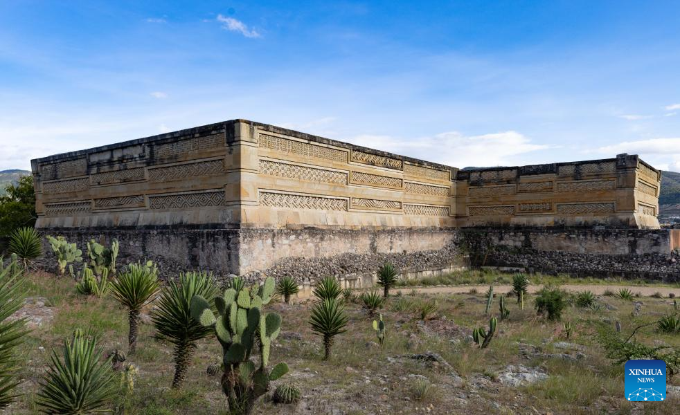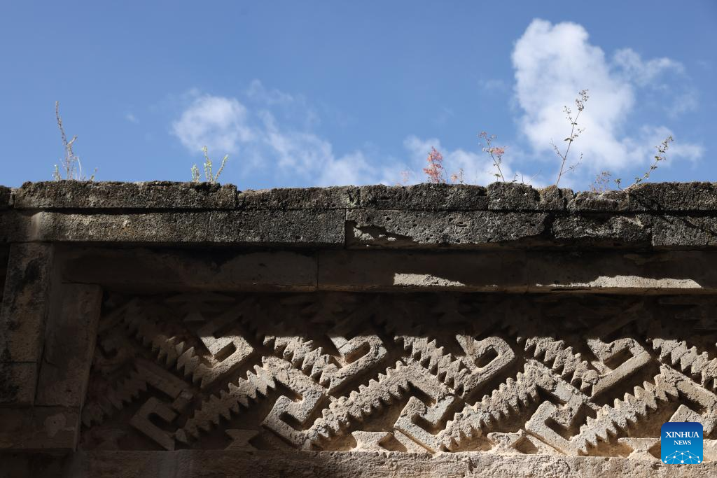 This photo taken on Sept. 17, 2025 shows a view of the Mitla Archaeological Zone in Oaxaca State, Mexico. Prehistoric caves of Yagul and Mitla in the Central Valley of Oaxaca lie on the northern slopes of the Tlacolula valley in subtropical central Oaxaca and consists of two pre-Hispanic archaeological complexes and a series of pre-historic caves and rock shelters. They were inscribed on UNESCO's World Heritage List in 2010. (Xinhua/Li Mengxin)