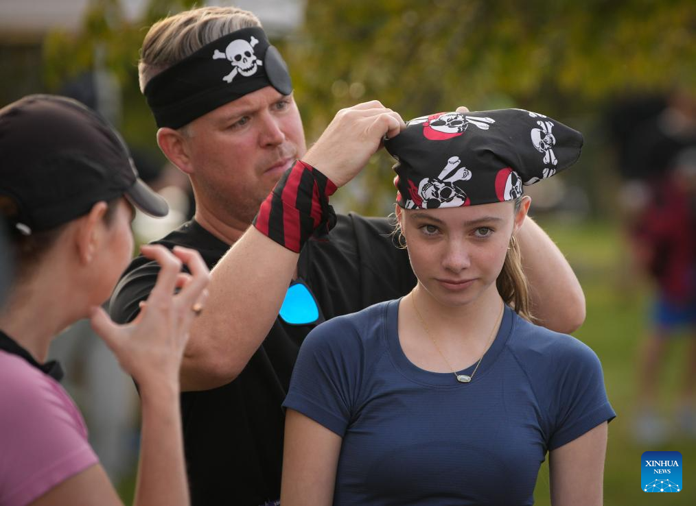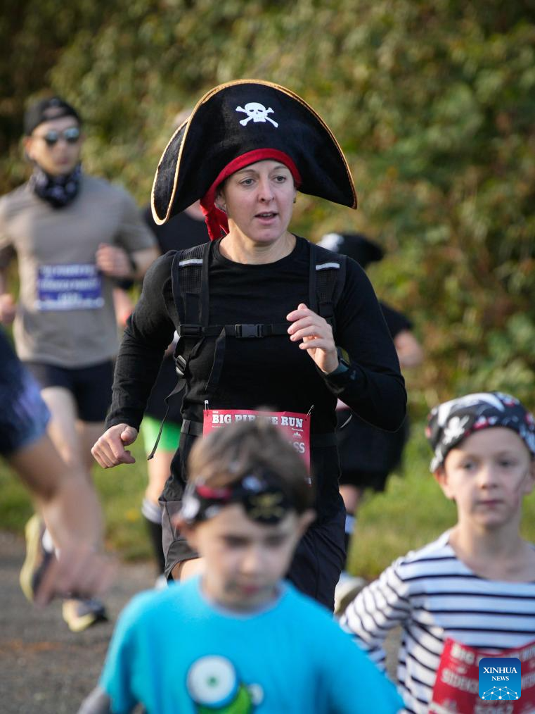 Participants dressed in pirate-themed costumes take part in the Big Pirate Run in Richmond, British Columbia, Canada, Sept. 21, 2025.