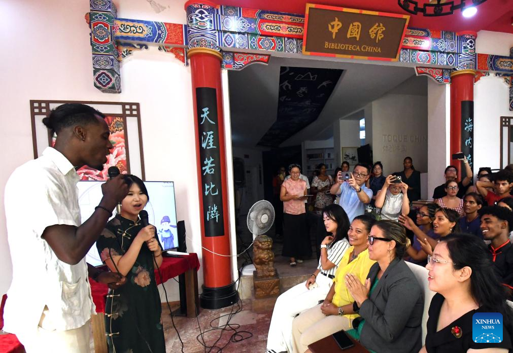 Students from the Confucius Institute at the University of Havana perform during a cultural event "Tea for Harmony: Yaji Cultural Salon" in Havana, capital of Cuba, Sept. 30, 2025. (Photo by Joaquin Hernandez/Xinhua)