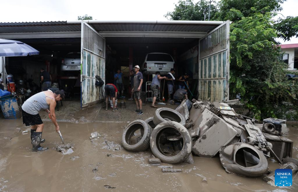 People clean silt at a house in the city of Poza Rica, Veracruz state, Mexico, on Oct. 11, 2025. At least 41 people have been killed as torrential rains and landslides battered Mexico in recent days. (Photo by Francisco Canedo/Xinhua)