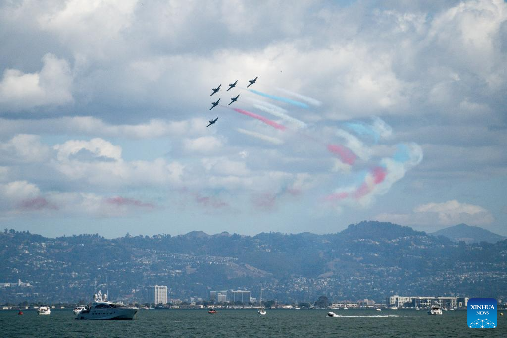 Members of the Patriots Jet Team perform during the annual Fleet Week air show in San Francisco, California, the United States, on Oct. 11, 2025. (Photo by Ziyu Julian Zhu/Xinhua)