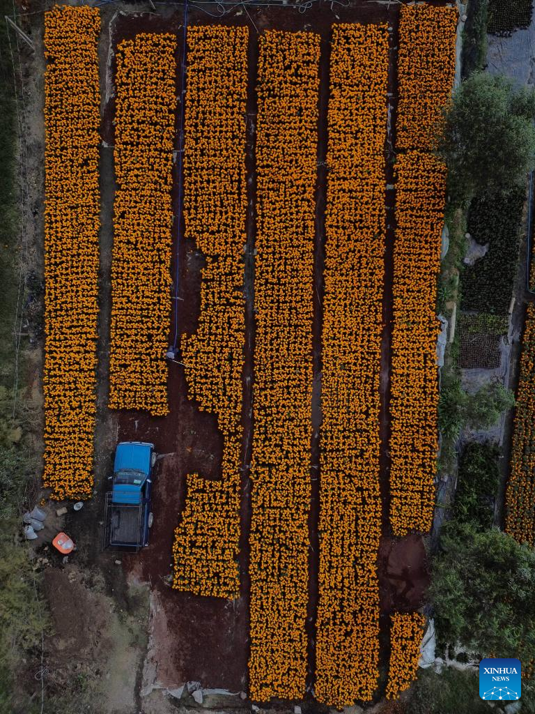 This aerial drone photo taken on Oct. 21, 2025 shows a field of marigold flowers in Mexico City, capital of Mexico. Every year on Nov. 1 and 2, Mexicans celebrate the Day of the Dead. In the days leading up to the festival, fields of marigolds are harvested and brought to markets, eventually adorning streets, homes, and cemeteries across the country. (Photo by Francisco Canedo/Xinhua)