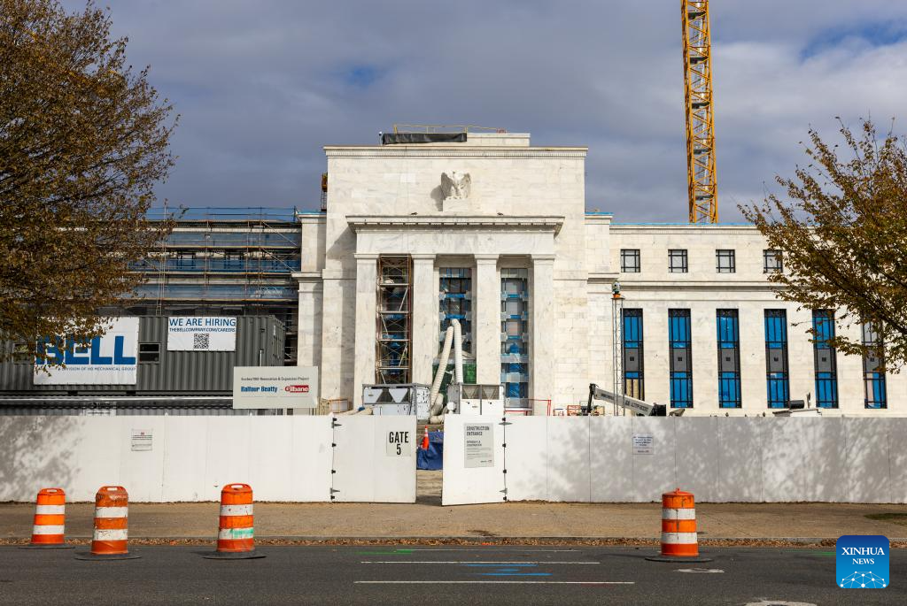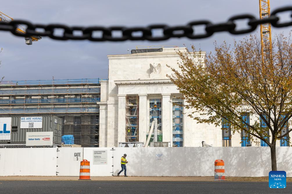 Photo taken on Oct. 29, 2025 shows the U.S. Federal Reserve building in Washington, D.C., the United States. The U.S. Federal Reserve on Wednesday decided to lower the target range for the federal funds interest rate by 25 basis points to 3.75 to 4 percent, marking its second rate cut this year. (Xinhua/Hu Yousong)