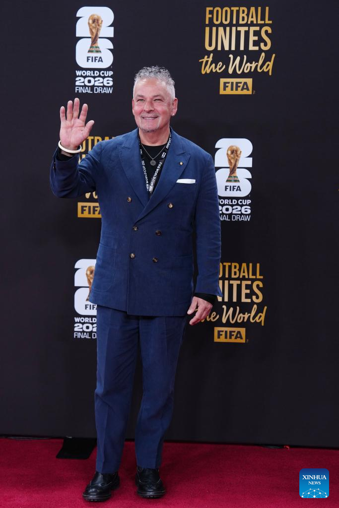 Former Italian footballer Roberto Baggio arrives on the red carpet ahead of the FIFA World Cup 2026 Final Draw at the Kennedy Center in Washington D.C., the United States, Dec. 5, 2025. (Xinhua/Jia Haocheng)