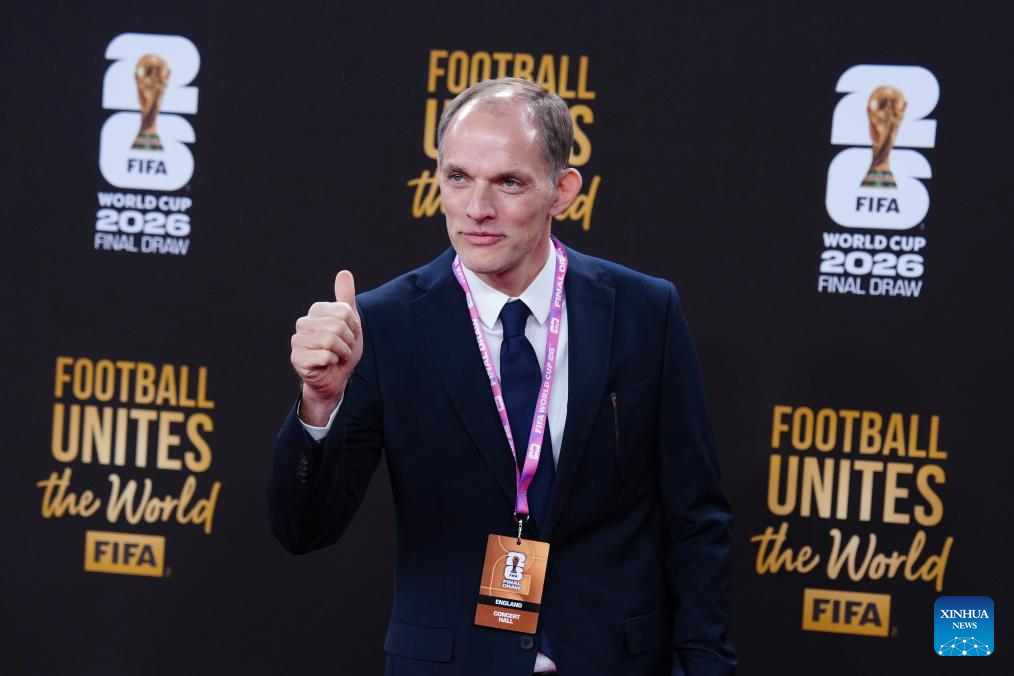 England's head coach Thomas Tuchel arrives on the red carpet ahead of the FIFA World Cup 2026 Final Draw at the Kennedy Center in Washington D.C., the United States, Dec. 5, 2025. (Xinhua/Jia Haocheng)