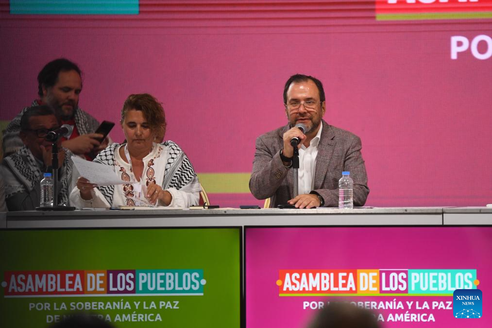 Venezuelan Foreign Affairs Minister Yvan Gil (R) speaks during the opening of the People's Assembly for Peace and Sovereignty of Our America in Caracas, Venezuela, Dec. 9, 2025. The U.S. government is waging "psychological warfare" against Venezuela following the failure of its economic sanctions, Venezuelan Foreign Affairs Minister Yvan Gil said Tuesday.
