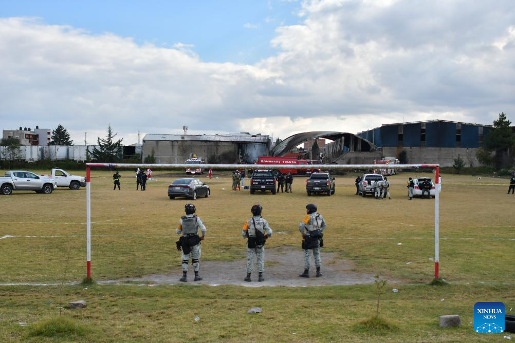 Members of the National Guard keep watch at the aircraft crash site in Toluca, the State of Mexico, central Mexico, Dec. 15, 2025. At least six people were killed Monday after a small aircraft crashed in the municipality of San Mateo Atenco in Mexico's central State of Mexico, local authorities said. (Photo by Arturo Hernandez/Xinhua)