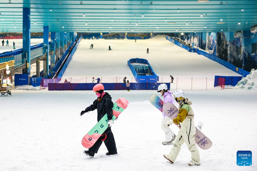 Tourists have fun at the ice and snow world of the Taihu Lake Longemont Paradise in Changxing County of Huzhou City, east China's Zhejiang Province, Dec. 29, 2025. Skiing and a variety of other winter sports have become a popular seasonal pastime for a growing number of people in Zhejiang Province. The province boasts many ice and snow resorts, both indoor and outdoor, providing ample choices for enthusiasts. Notable examples include the Wansongling Ski Resort in Hangzhou, Qiaobo Ice and Snow World in Shaoxing, Taihu Lake Longemont Paradise in Huzhou, SkyLand ski resort in Anji, and Pan'an ski Resort in Jinhua. Moreover, such facilities are increasingly taking root across the province.