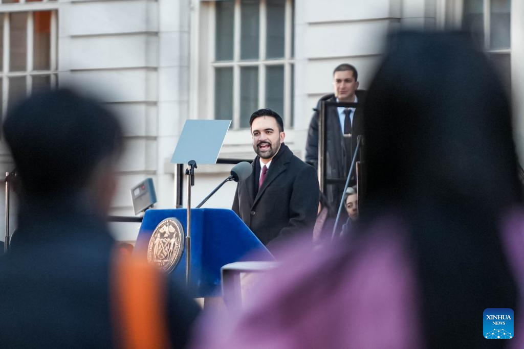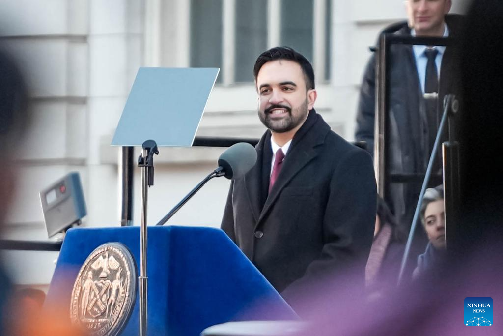 NEW YORK, Jan. 1 (Xinhua) -- Democrat Zohran Mamdani was sworn in as New York City mayor on Thursday, becoming the first Muslim leader of America's largest city by population with a vow to combat the city's affordability crisis.