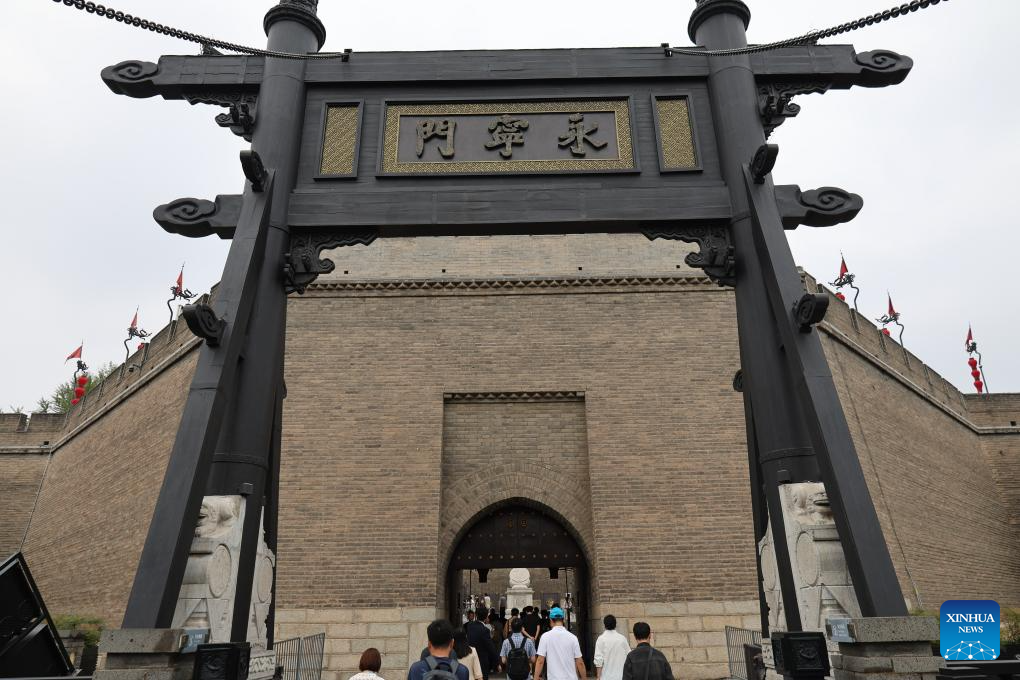 Tourists visit the Xi'an City Wall in Xi'an, northwest China's Shaanxi Province, Sept. 10, 2025. (Xinhua/Shao Rui)