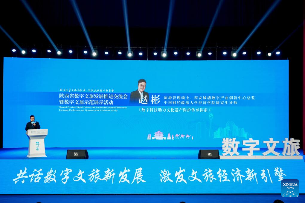 This file photo taken in March, 2023 shows Zhao Bin speaking during the Shaanxi Province Digital Culture and Tourism Development Promotion Exchange Conference and Demonstration Exhibition Activity in Xi'an, northwest China's Shaanxi Province. (Xinhua)