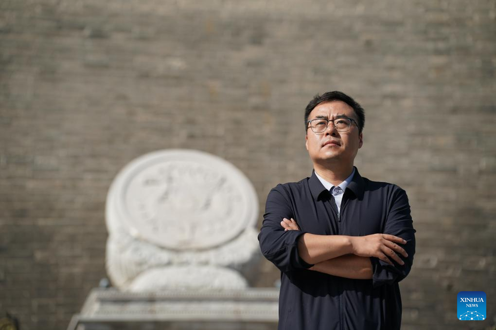 Zhao Bin is pictured on the Yongning Gate of the Xi'an City Wall in Xi'an, northwest China's Shaanxi Province, Sept. 12, 2025. (Xinhua/Shao Rui)