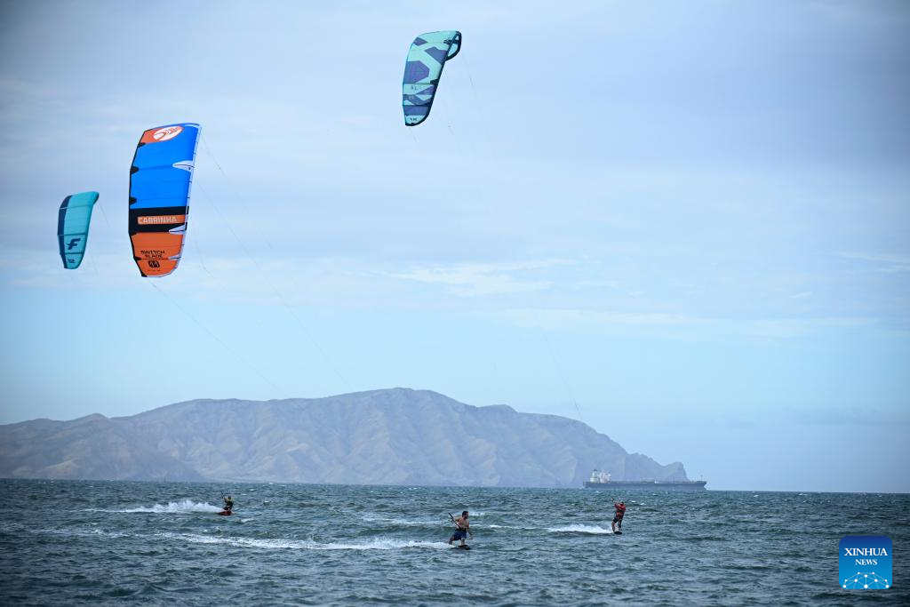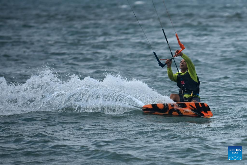 A kiteboarder sails in Lecheria, Anzoategui, Venezuela, Jan. 9, 2026. The U.S. military seized the fifth oil tanker allegedly linked to Venezuela early Friday morning. (Photo by Lucio Tavora/Xinhua)