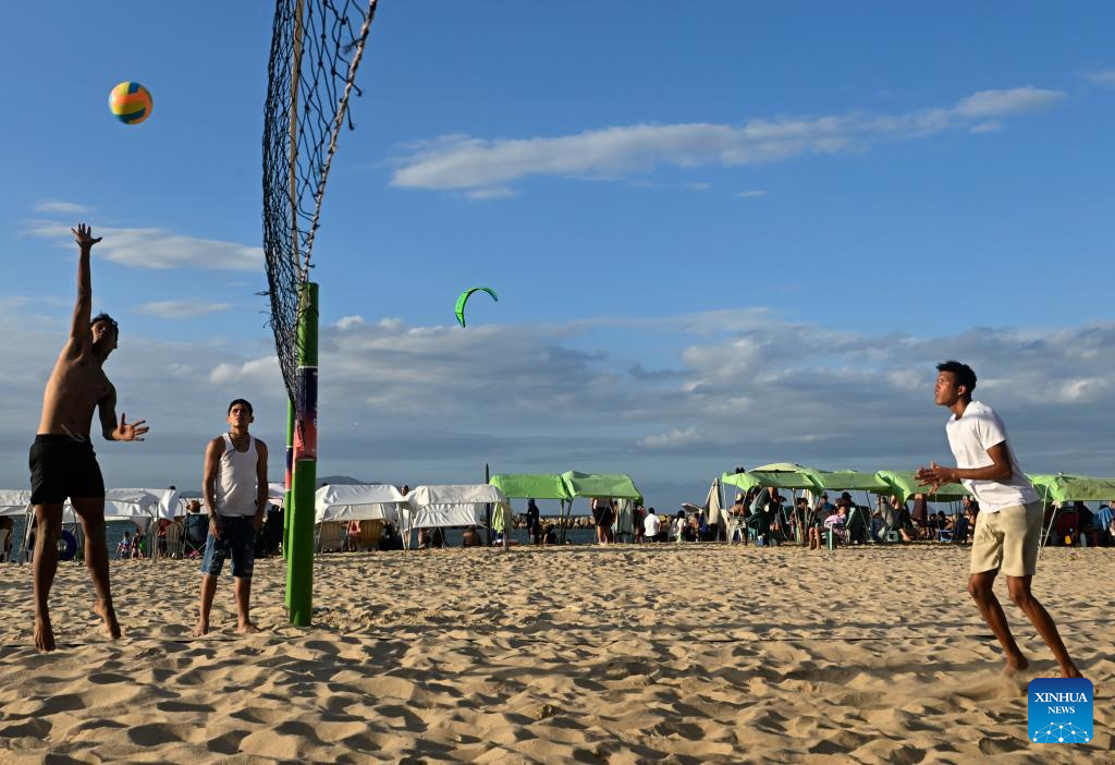 Young people play beach volleyball in Lecheria, Anzoatequi, Venezuela, Jan. 9, 2026. The U.S. military seized the fifth oil tanker allegedly linked to Venezuela early Friday morning. (Photo by Lucio Tavora/Xinhua)
