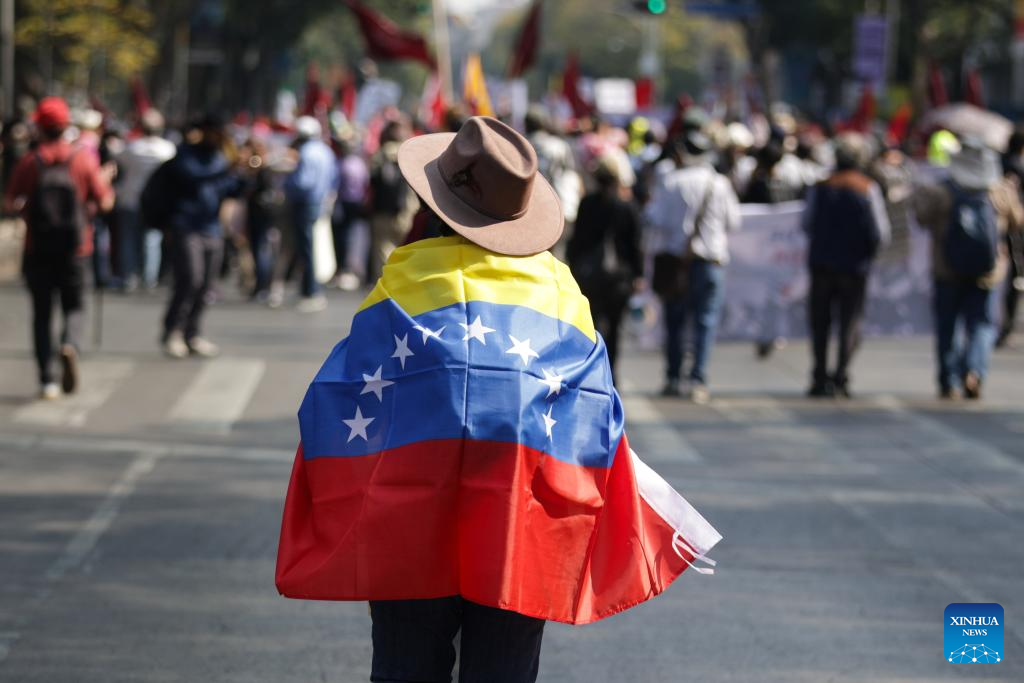 People attend a protest condemning U.S. attack on Venezuela in Mexico City, Mexico, Jan. 10, 2026. (Photo by Francisco Canedo/Xinhua)